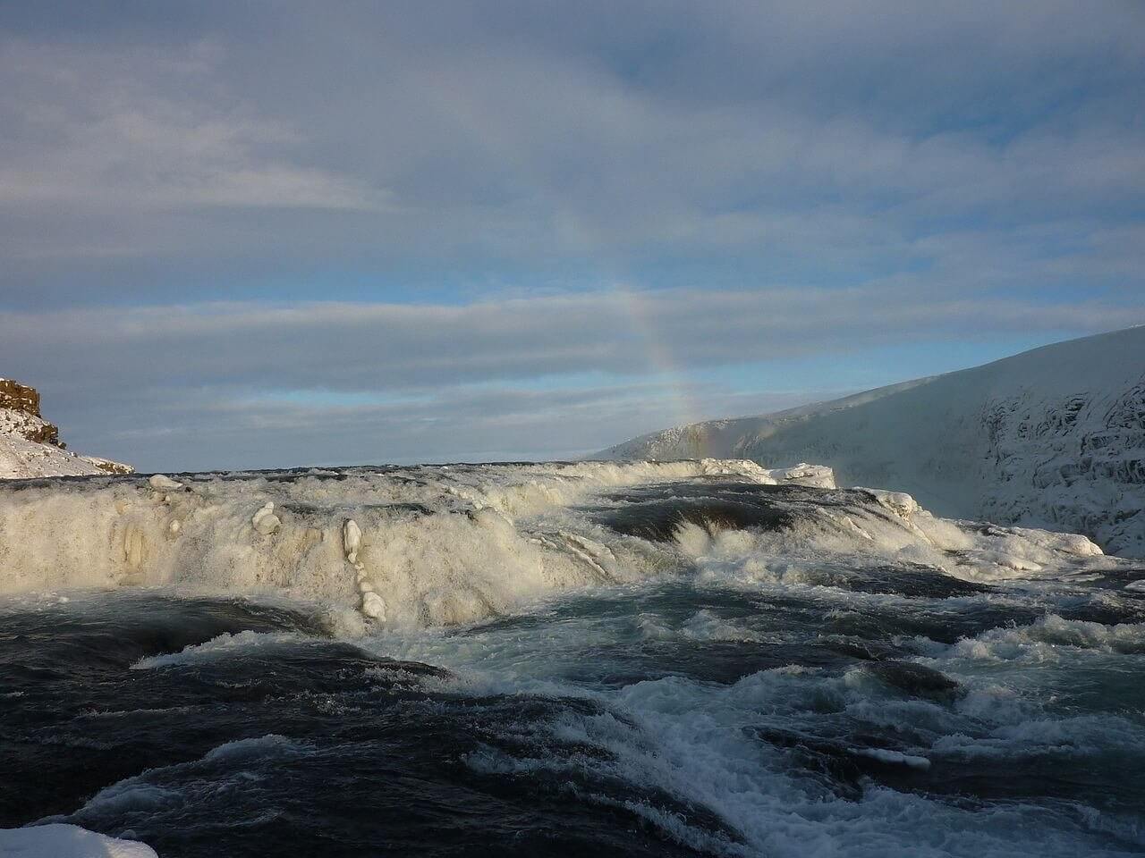 Aucune liste des plus belles cascades d’Islande ne sera complète si elle ne mentionne pas Gullfoss, la chute d’or. Elle fait partie du chemin touristique du cercle d’or que l’on suit pour découvrir la zone géothermique de Geysir et le parc national de ingvellir. Un arc en ciel immergeant des gouttelettes se forme très souvent au-dessus de cette merveille. Selon la légende, une jeune fille menaça de s’y jeter, si son cours venait à être utilisé pour produire de l’électricité.