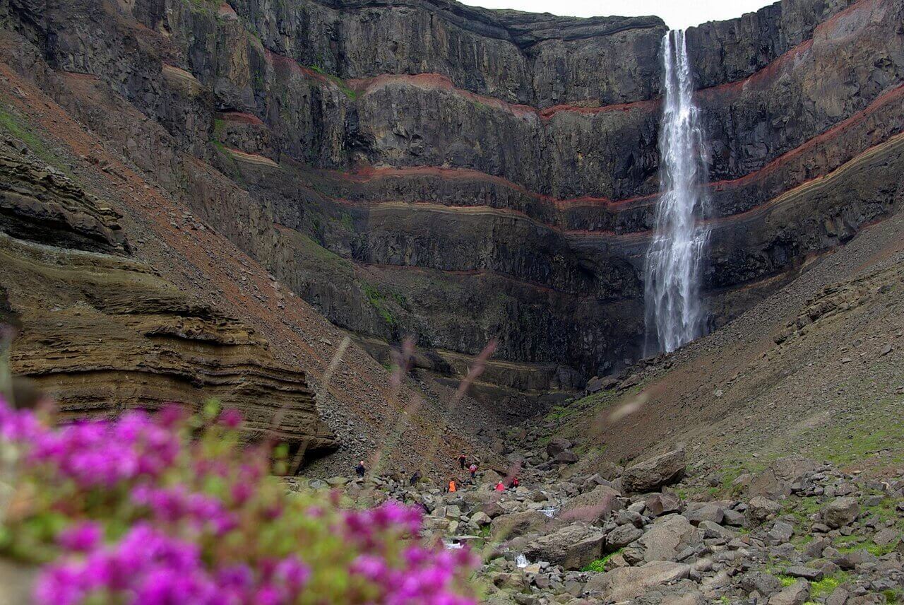 Considérée comme la 3ème plus haute cascade d’Islande (118 m), Hengifoss se trouve non loin de l’extrémité méridionale du Lögurinn, dans le Nord-Est du pays, sur le cours du petit torrent, Brekkuselslækur.