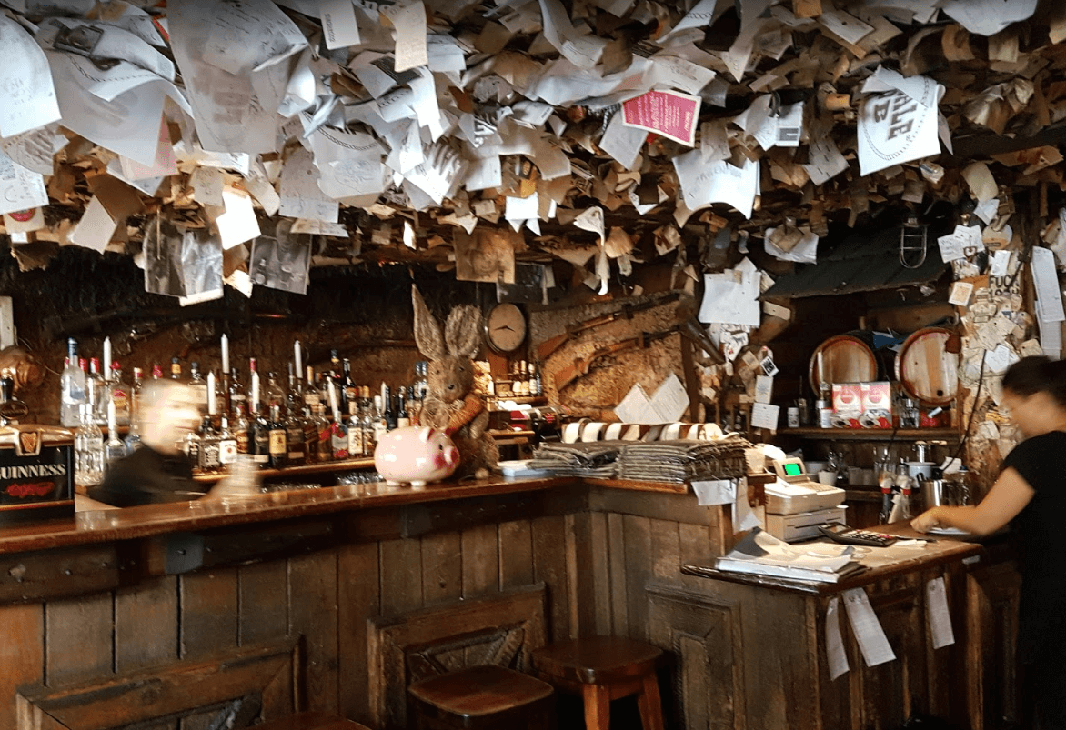 A Budapest, le For sale pub est un bar original où les clients peuvent laisser leurs publicités personnelles partout où ils le souhaitent. Situé en face d’un centre commercial très chic, le bar décoré de façon hétéroclite attire les visiteurs du monde entier. Les Hongrois s’y rendent aussi parce que la cuisine qui y est servie est réputée. Faites-leur confiance si vous voulez manger des plats typiques et des spécialités hongroises goûteuses. Couvrant chaque centimètre de chaque surface, de petits morceaux de papier agrafés et épinglés depuis de nombreuses années ajoutent au lieu une atmosphère particulière. Dessins, notes, cartes de visite, tableaux et images publicitaires ne sont que quelques-uns des souvenirs qui ont été accrochés à l’intérieur du bar. Le sol est recouvert de paille et les clients sont encouragés à jeter leurs coques de cacahuètes par terre ! C’est un lieu excentrique à ne pas manquer !